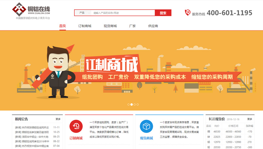 銅鋁在線為有色金屬行業(yè)的電子商務(wù)交易平臺,采用系統(tǒng)自動(dòng)組批團(tuán)購的方式,將需求相同的客戶組批給統(tǒng)一廠家競價(jià),以組團(tuán)形式在降低買家采購成本的同時(shí)降低工廠的生產(chǎn)成本。平臺同時(shí)提供現(xiàn)貨采購模式,供用戶實(shí)現(xiàn)快速線上交易。